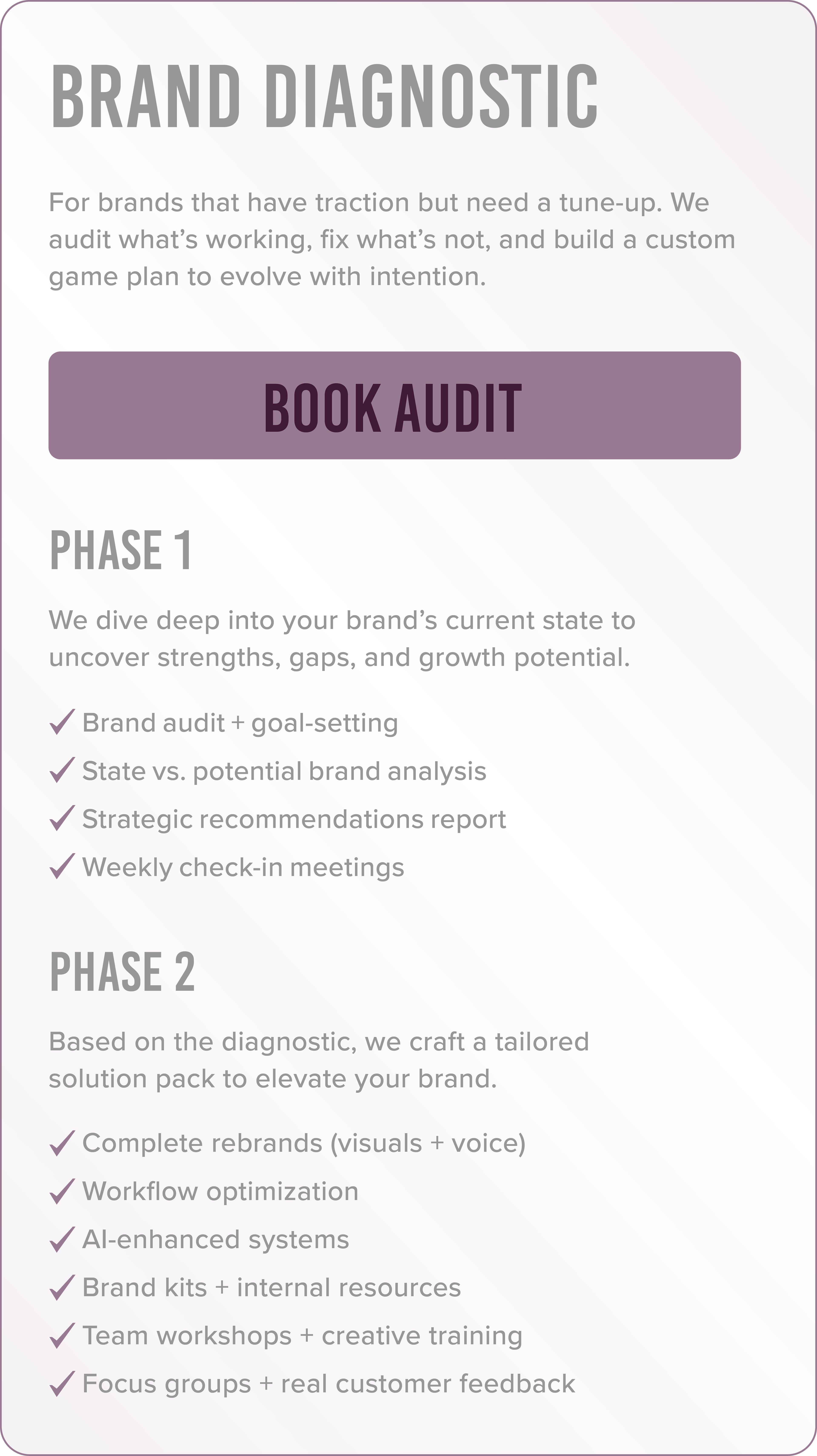 With our strategic brand consulting, we’ll help you build a brand with guts, flavor, and the kind of clarity that cuts through the noise—whether you’re starting fresh or refining the real thing.